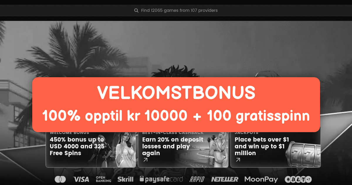 Bonustilbud Stor velkomstbonus: 100% opptil $44.250 + 100 gratisspinn på de første 4 innskuddene